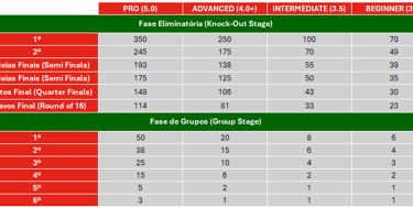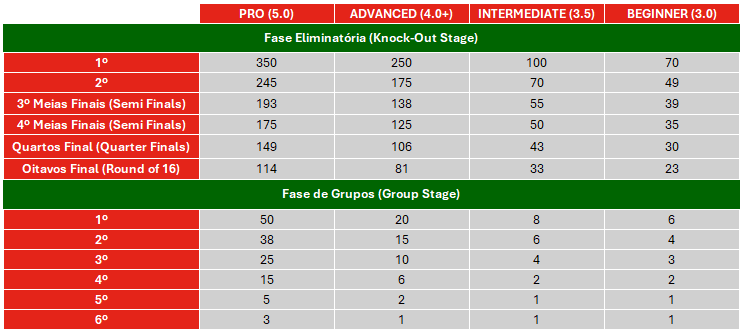 In Open tournaments (without levels), the score considered follows the 3.5 table.
