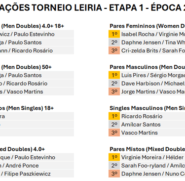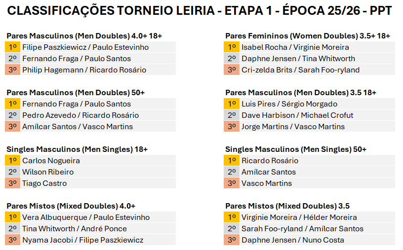 Um agradecimento especial à Winner, ao Clube Académico de Leiria, ao Clube Pickleball de Leiria e à Peak pelo apoio fundamental na realização deste evento.