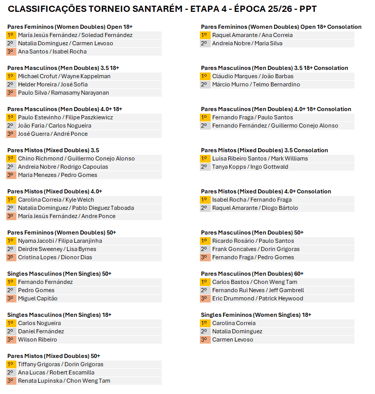 👏 Thank you to all the athletes who put on a great show, to the referees and volunteers who made everything possible, and to the Clube Ténis Santarém organizing team for their hospitality and professionalism. A special thank you to the spectators who attended and turned the venue into a true celebration of sport.
